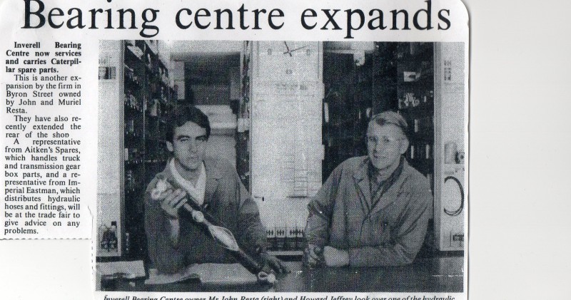 Fred Monckton’s Bearing Centre from Moree had opened a bearing business in Rivers Street, Inverell. In 1979, John and Muriel Resta along with the Campbells purchased the business and in June 1979 moved to new premises they built at 214 Byron Street, Inverell. Howard Jeffrey had been employed at Fred Monkton’s and moved with the business.